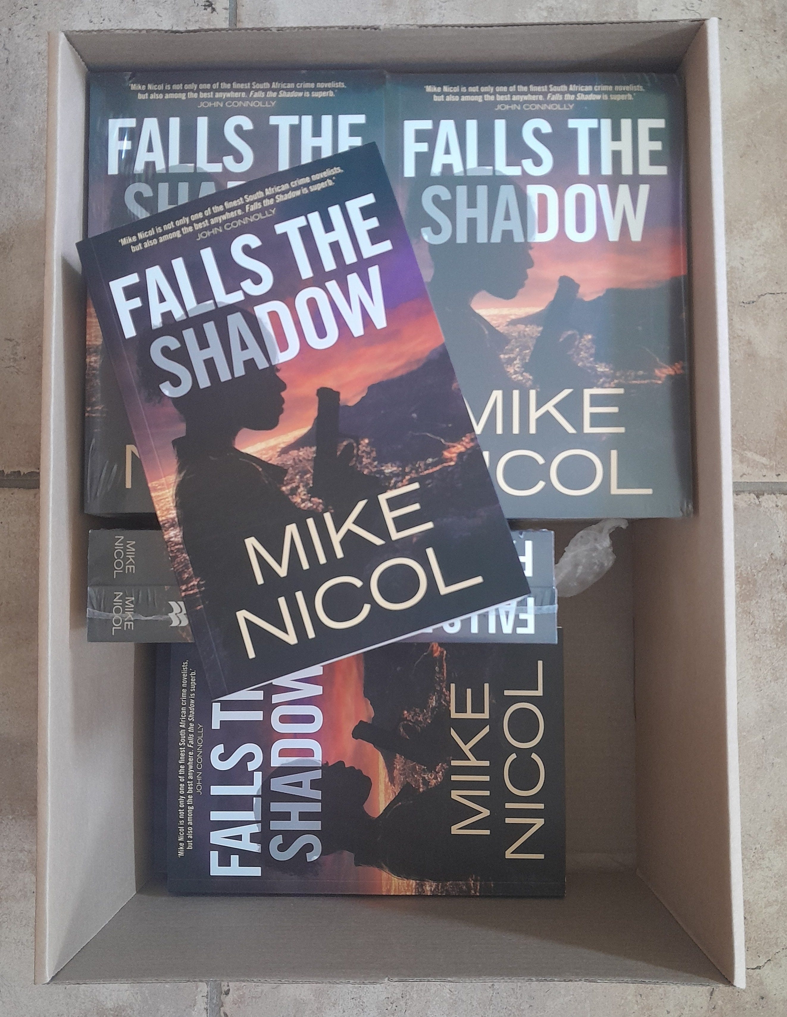 2. While on the topic of Falls the Shadow, a huge box of said books arrived today from my publishers, PanMac. They’re calling this The Jackal Series, and have scheduled number two, Firing Line, for February 2027. Meanwhile, somewhere in Texas, the perspicacious Jessica Powers of Catalyst Press is editing that manuscript. Catalyst also publish Falls the Shadow in February and btb Verlag publish in August with the title Die Schakalin (The Jackal).